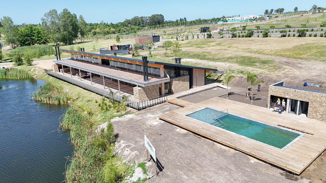 Club House con piscina frente al lago