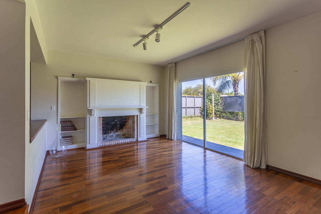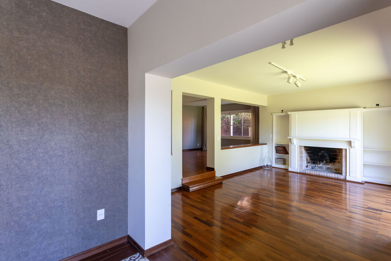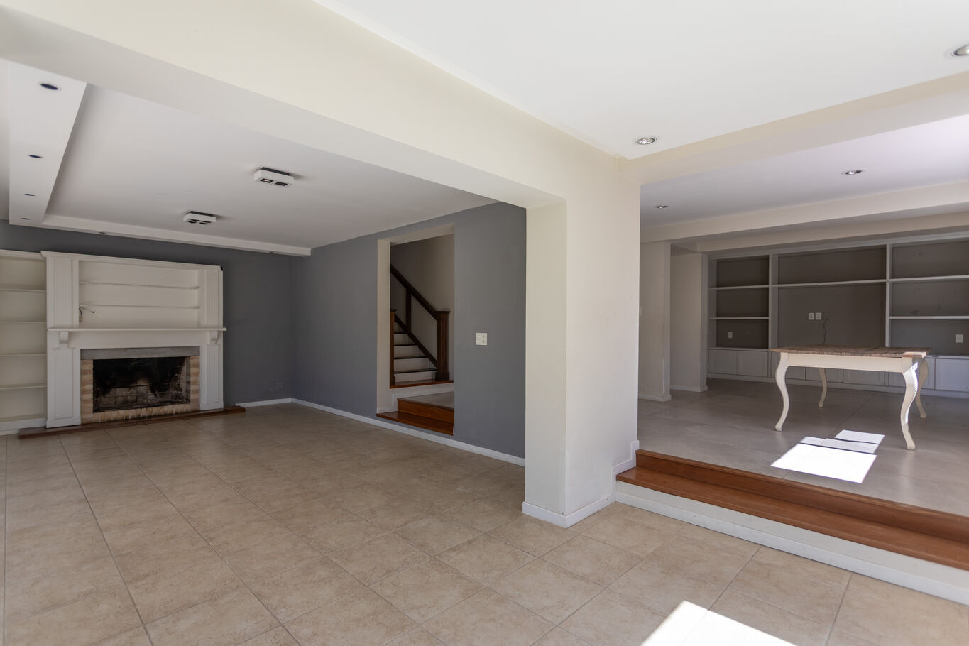 Desde el ingreso, un hall de recepción ordena los espacios y da paso a un living principal con estufa a leña, cálido y luminoso, conectado al comedor. Hacia el fondo, el área social se abre completamente al exterior a través de grandes ventanales, integrando el estar diario con la galería, el jardín y la piscina.