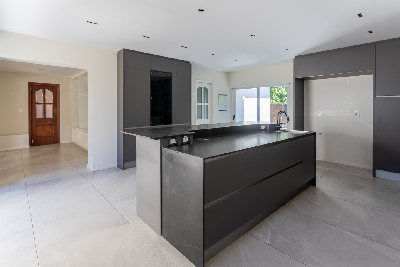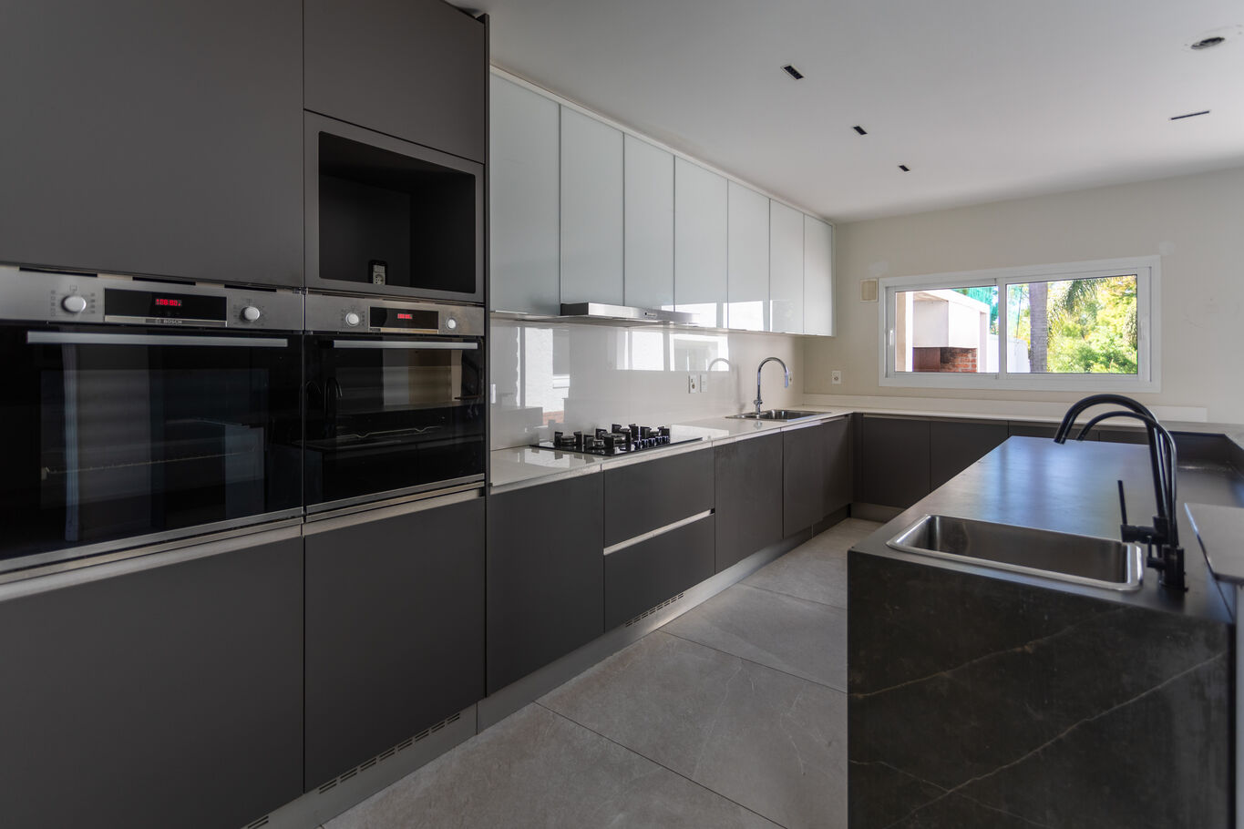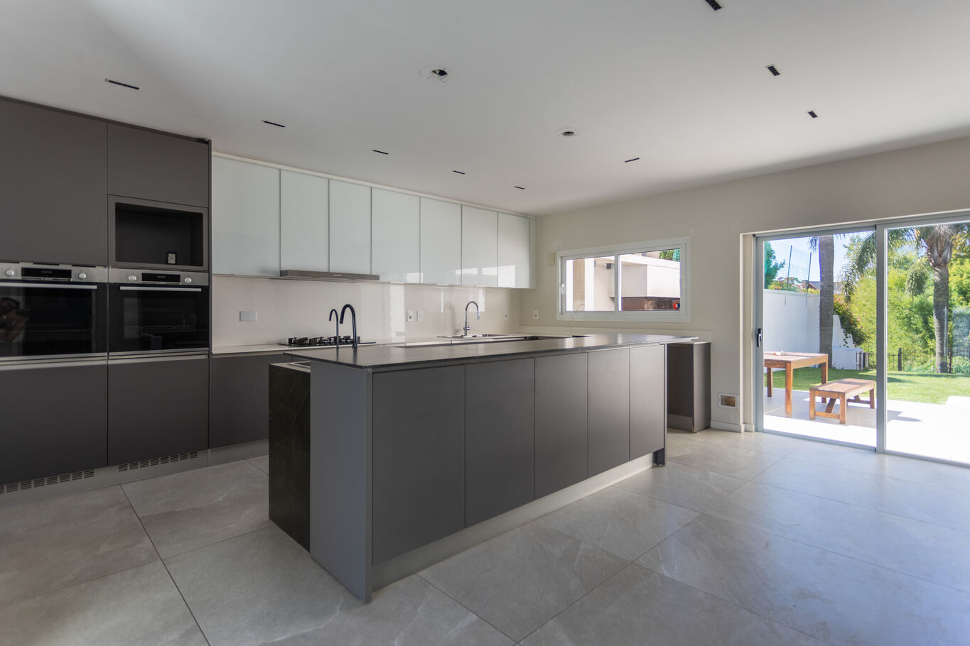 Cocina definida, moderna, con isla central y excelente capacidad de guardado